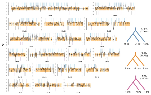 The advent of next- (short-read) and third-generation (long-read) sequencing technologies can generate de novo genome assemblies of many species with unprecedented quality and affordable cost. By generating and comparing high-quality reference genome assemblies from several recently and distantly diverged species in a phylogenetic framework, a long-term goal is to test for the evolutionary forces that drive evolution of the genome itself. Particular interests include: 1) Discover both conserved and novel loci likely to be responsible for core biological functions, phenotypic differences, environmental adaptations, and many other lineage-specific characteristics. 2) As transposable elements (TEs) typically make up a large proportion of eukaryotic genome, we are interested to test how TEs drive genome evolution ranging from small-scale structural changes to large-scale karyotype differences between lineages of closely related species, whether different families and classes of TEs have variable activity across lineages, and how TEs associated with epigenetic modifications rewire the gene regulatory network through evolutionary time. 3) Investigate how do newly evolved genes originate (e.g. de novo, duplication or horizontal gene transfer), spread, and contributed to adaptive evolutionary innovation, how do these new genes acquire regulatory sequences for proper spatial and temporal expression, and what genetic and evolutionary mechanism govern these processes.